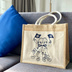 極伯仲のマリン風ジュートバッグです。 プリント部分はシルクスクリーン印刷です。 前プリント部分はポケットになっています。 〇サイズ 縦31.5cm×横36cm×マチ19cm 把手25cm(把手長さ全長50cm) ※注意 〇お洗濯はしないでください。 〇自力印刷の為、多少かすれ等ございます。ご了承ください。